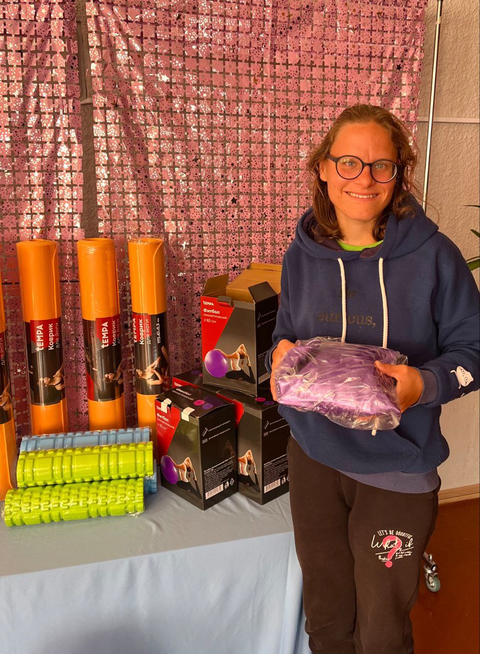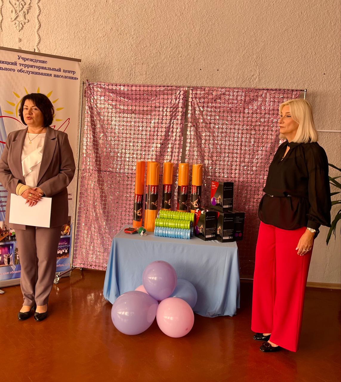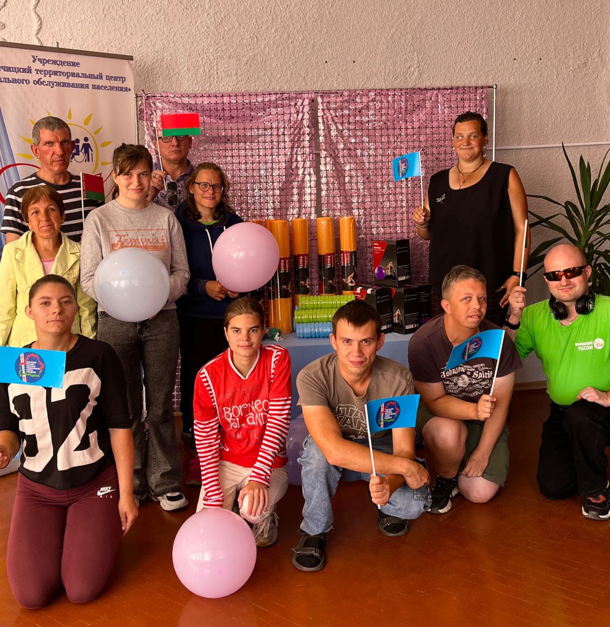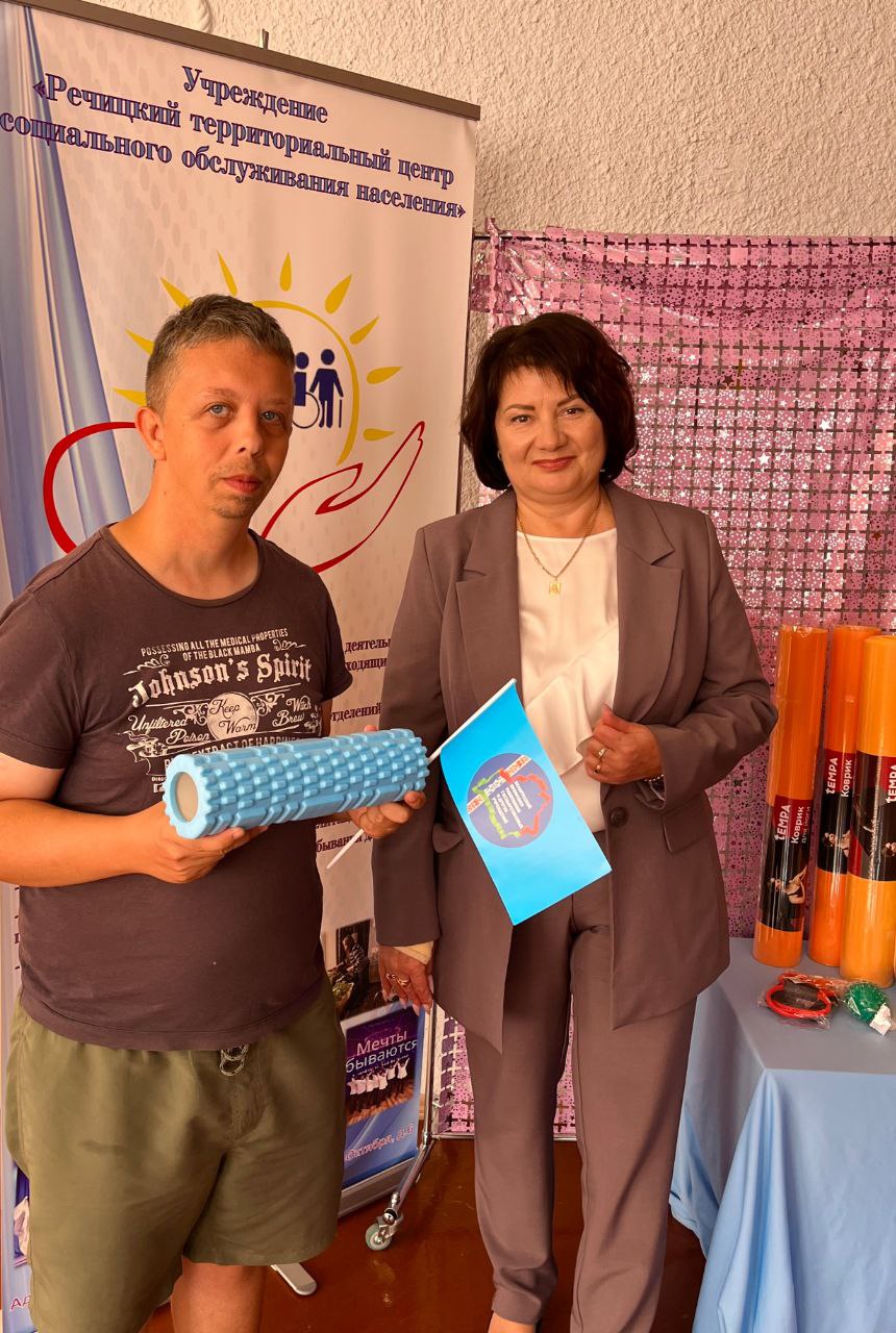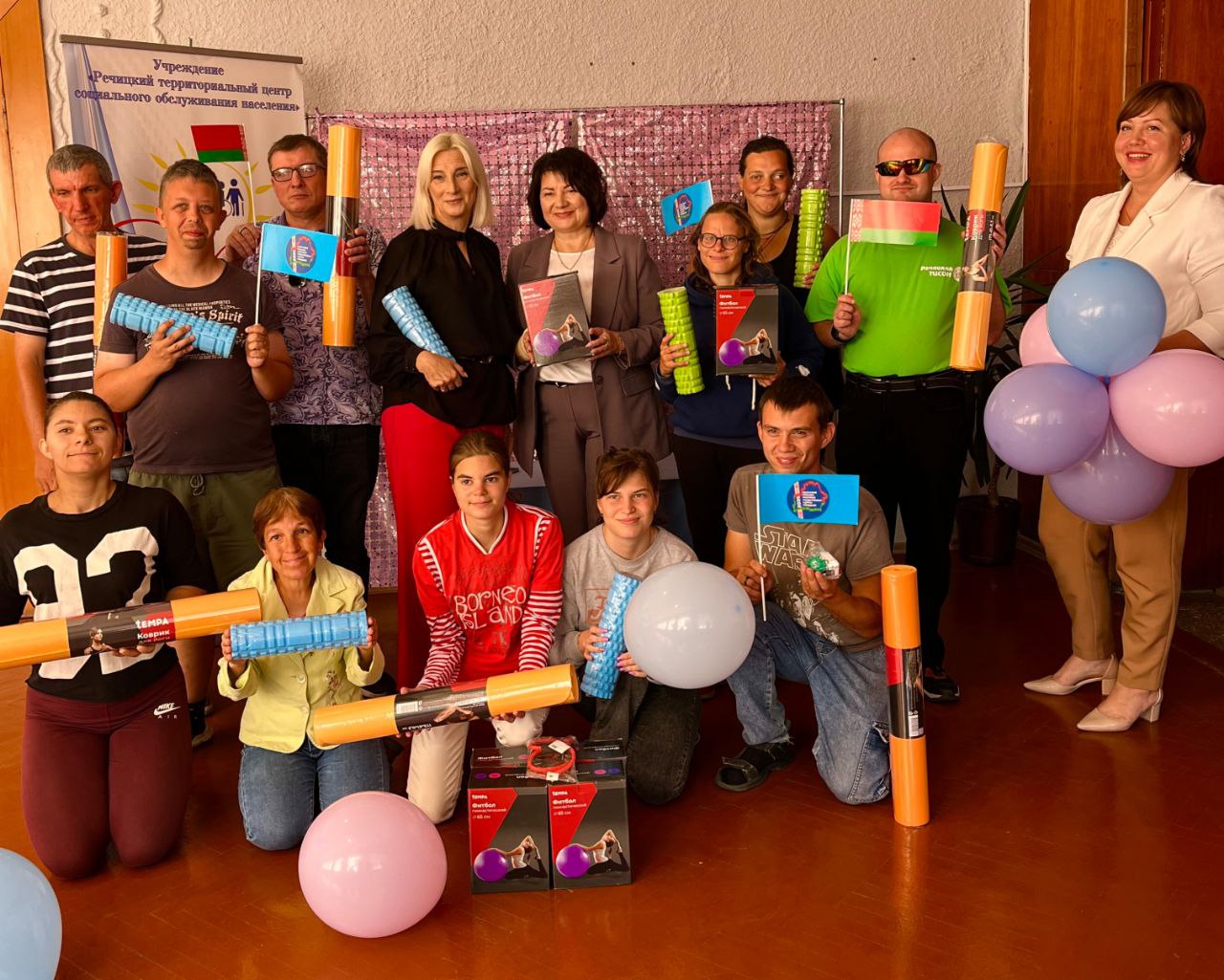 Председатель Речицкой районной организации Белорусского профсоюза работников государственных и других учреждений Ламтева Нина Владимировна приняла эстафету марафона “35 добрых дел” и вручила воспитанникам отделения социальной реабилитации, абилитации инвалидов Речицкого ТЦСОН спортивный инвентарь.